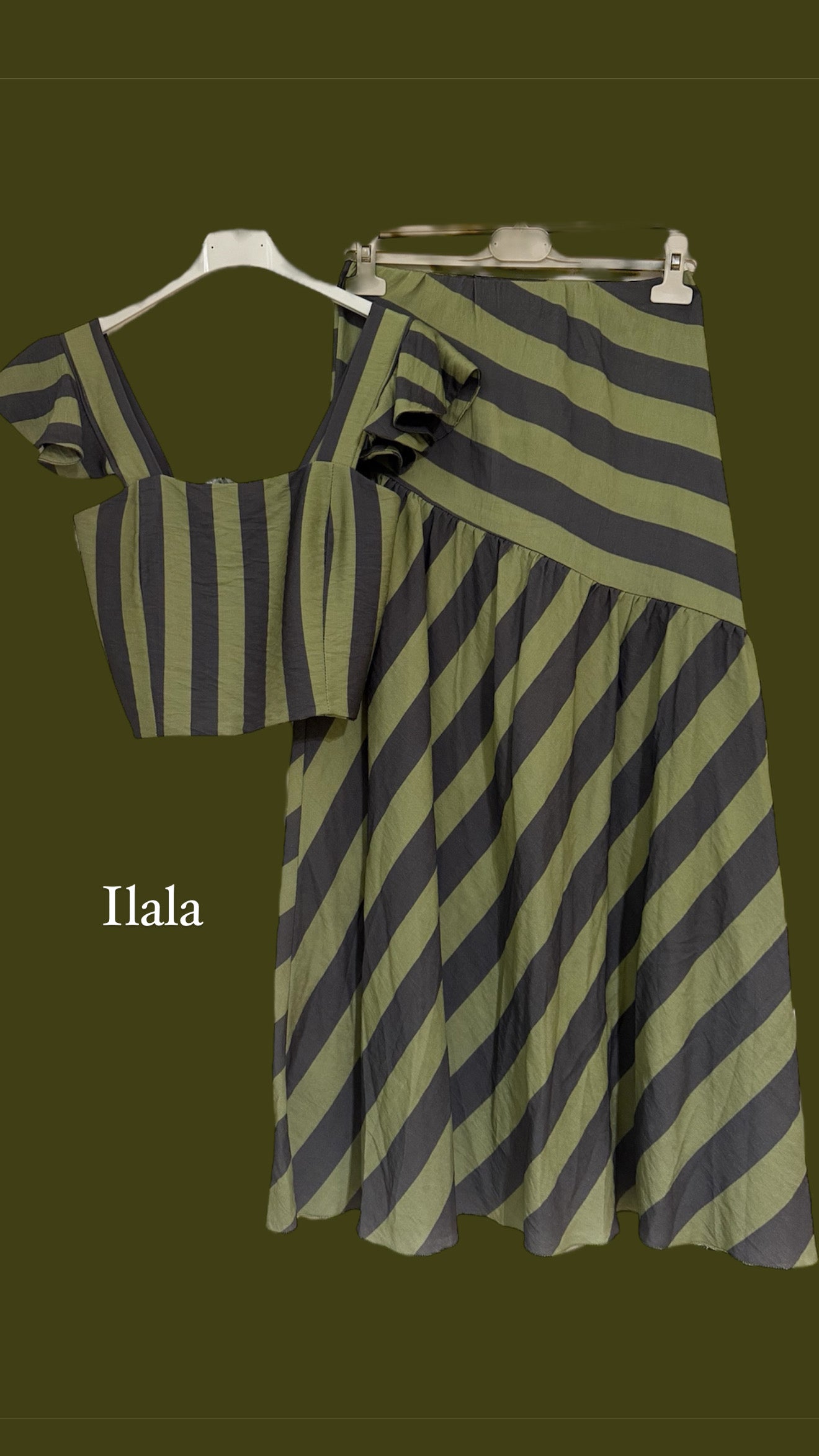 Printed skirt with side stripes. One size (S/L), with elastic waistband and midi length.