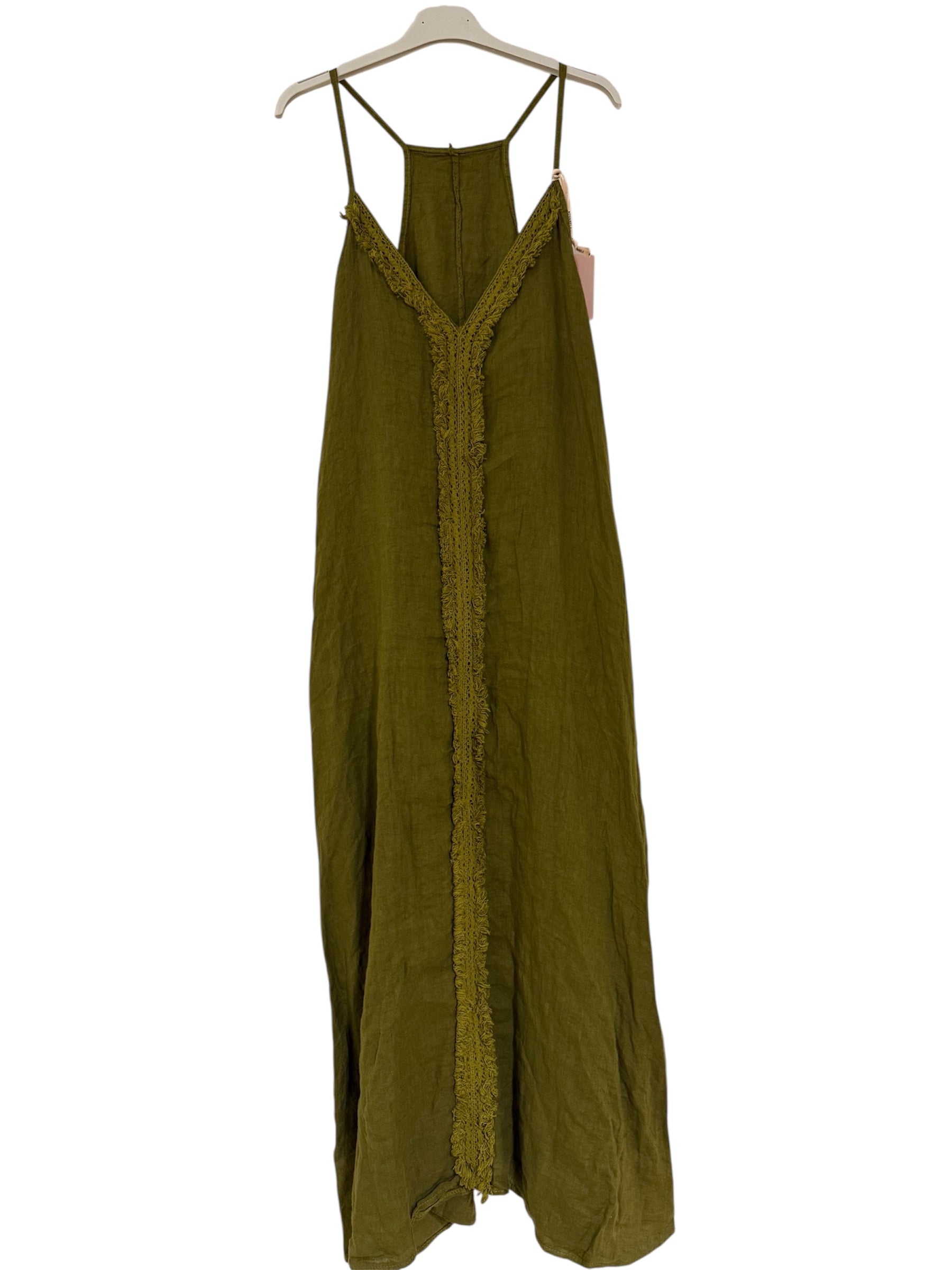 Linen dress with center fringe. One size. S/L