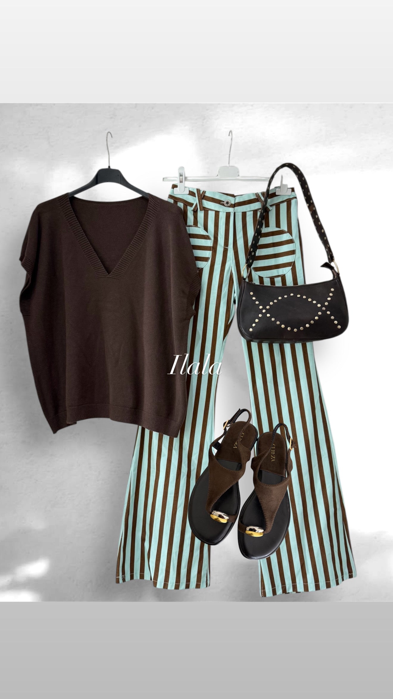 Bolso de piel con remaches en asa y parte delantera