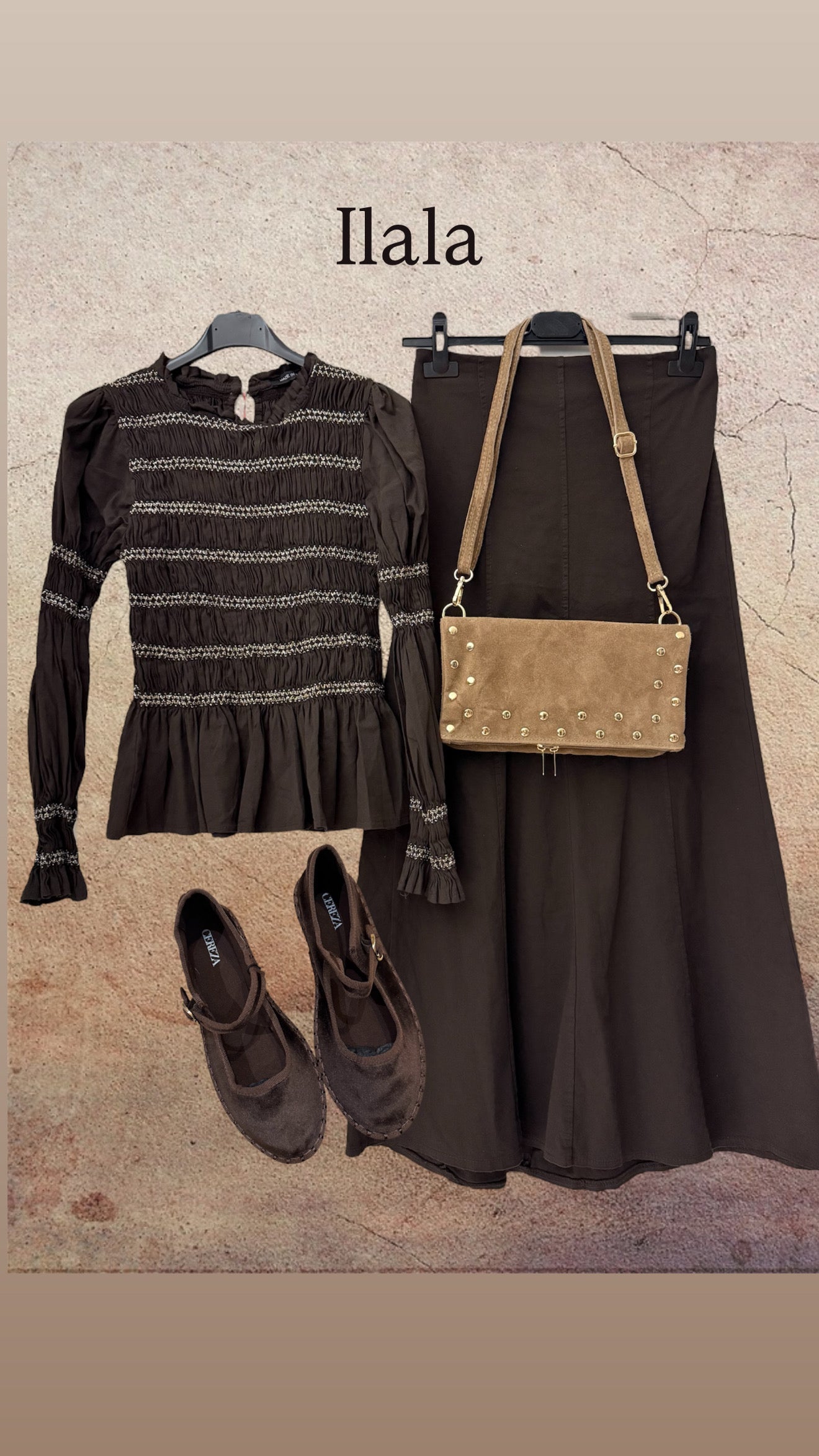 Camisa de algodón con frunces de hilo de lamé dorado. Talla única XS/M