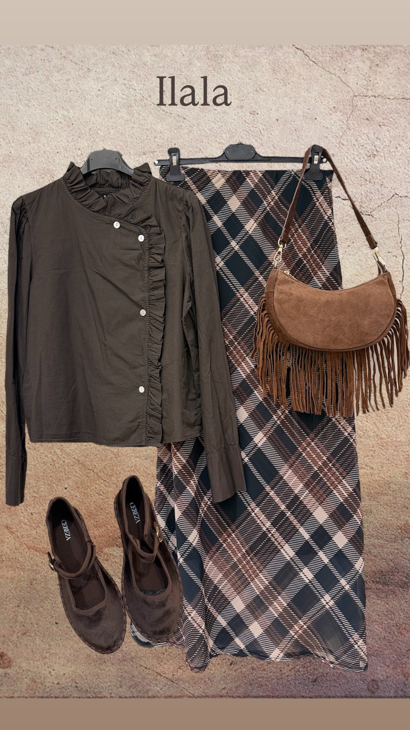 Camisa con tapa lateral de botones y volantito, de algodón. Talla única XS/M