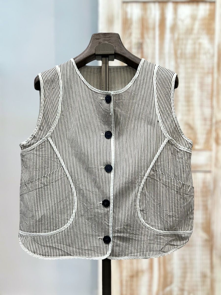 Chaleco de mil rayas ,ribeteado con cordón. Tiene a juego chaqueta y pantalón .Algodón.