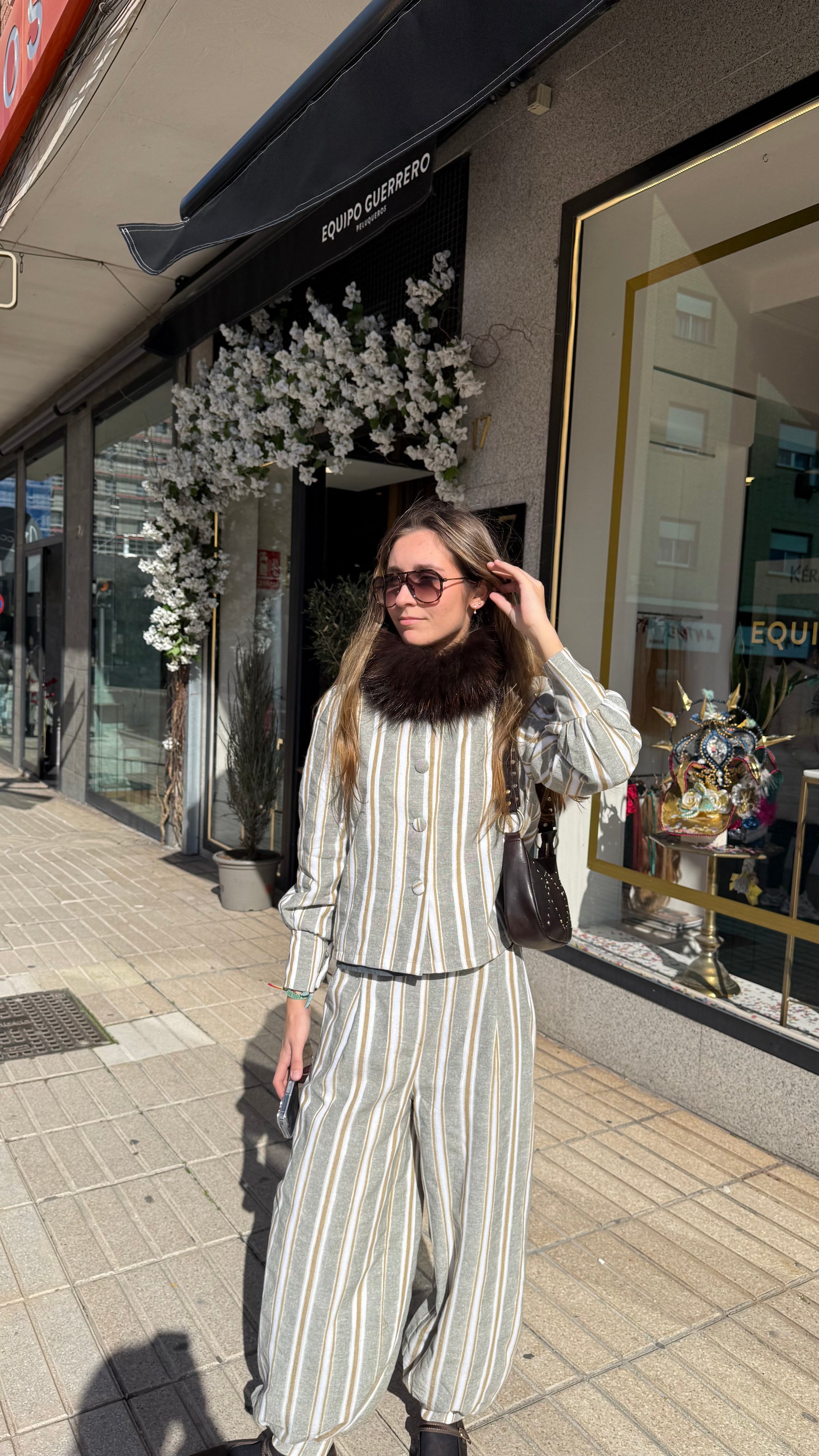 Chaqueta de algodón con cuello a la caja y puños , botones forrados . Talla única S/M. Conjunto muy juvenil y actual. Pantalón a juego