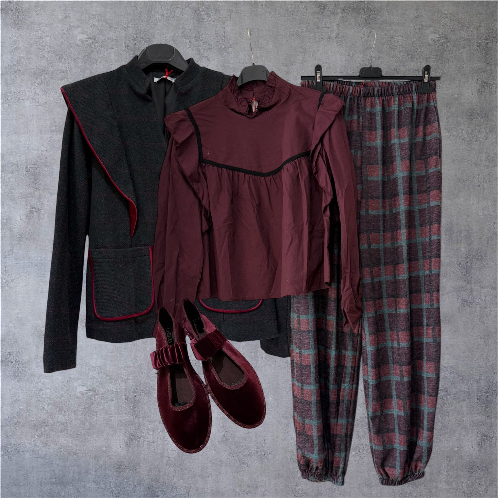Pantalón de paño estampado de cuadros. Talla única.S/M. Goma en cintura