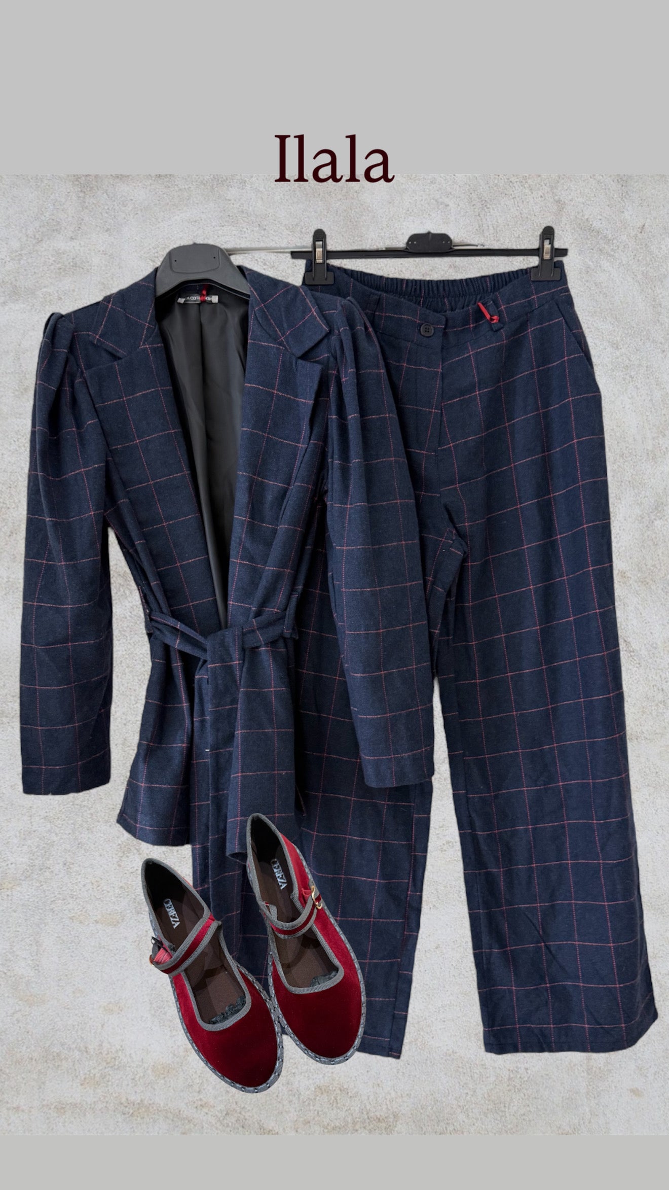 Pantalón de paño estampado en cuadros , con bolsillos y goma trasera en cintura , con cremallera y botón. Corte recto.Talla única S/M.