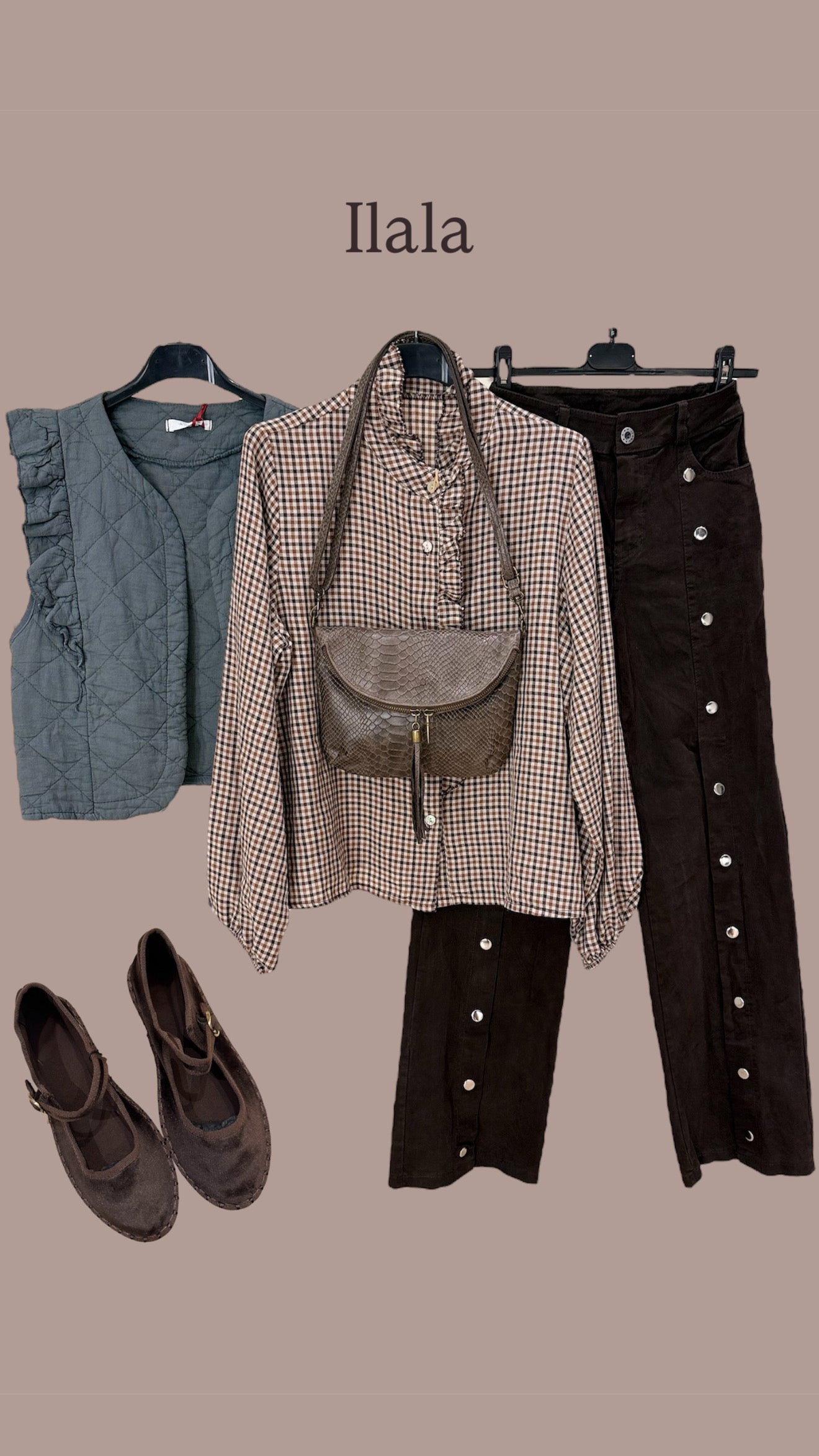 Pantalón de loneta con remaches centrales con posibilidad de apertura. Tiro alto
