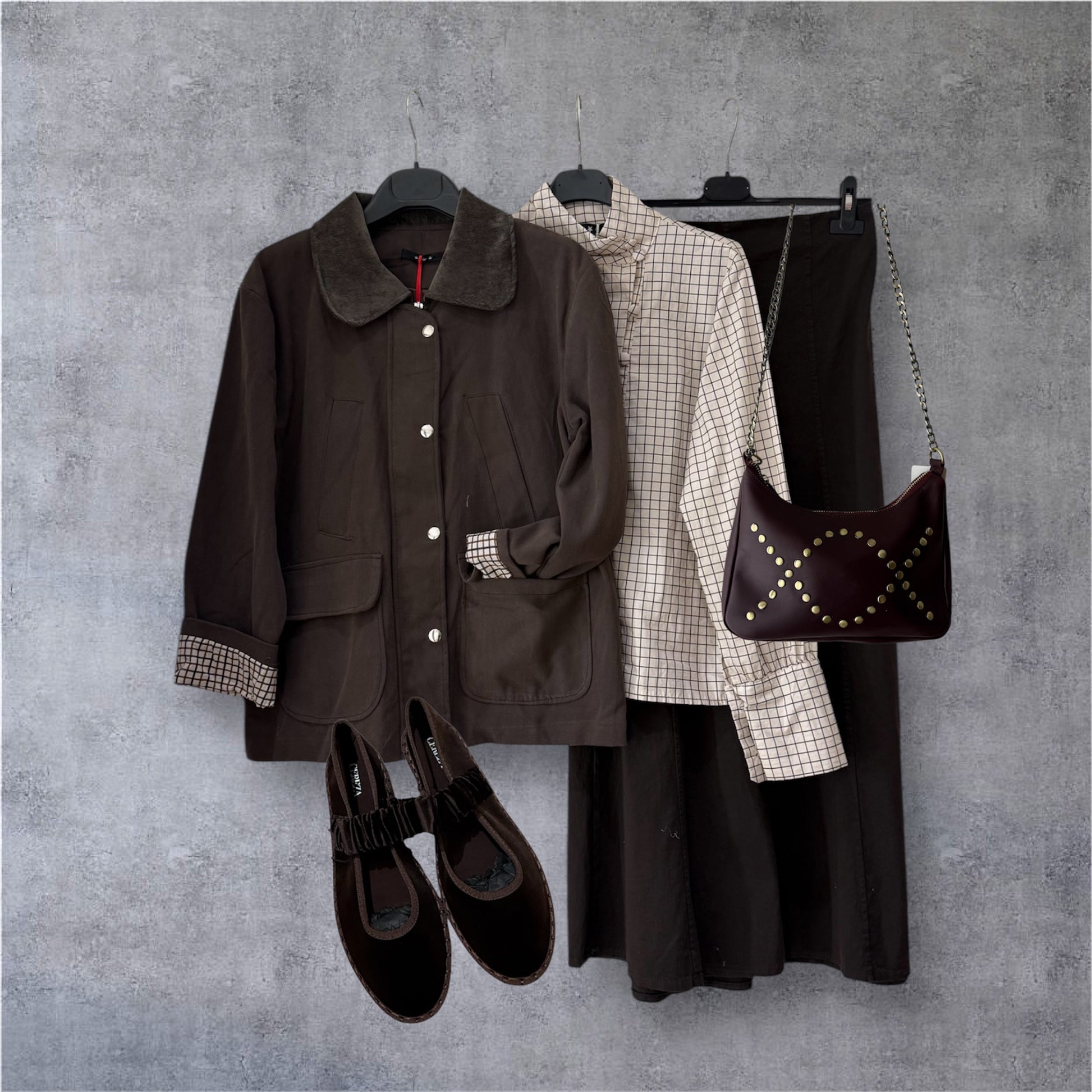 Parka de loneta con bolsillos y forro y con adorno en vuelta de mangas en tela vichy y cuello de micropana. Talla única S/M