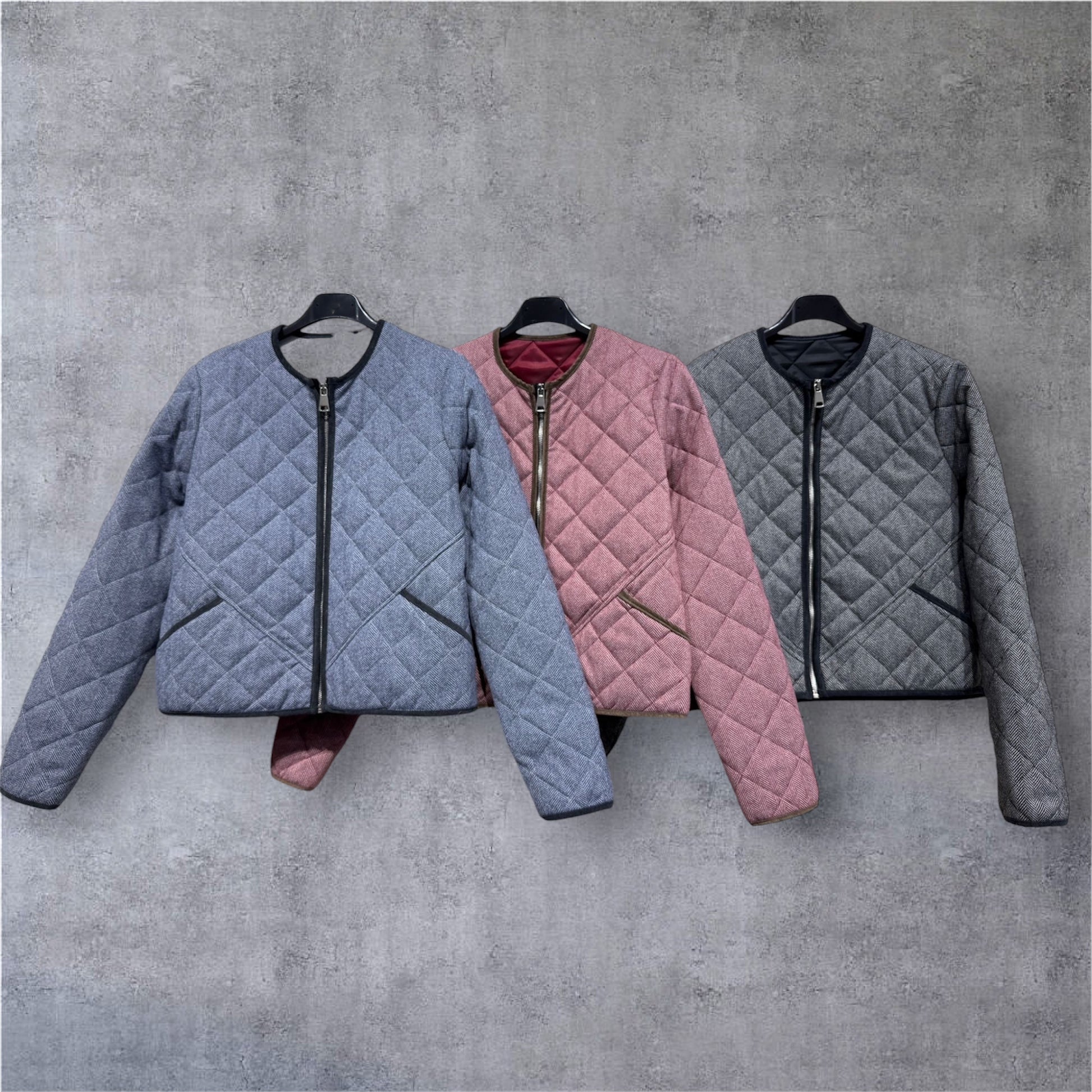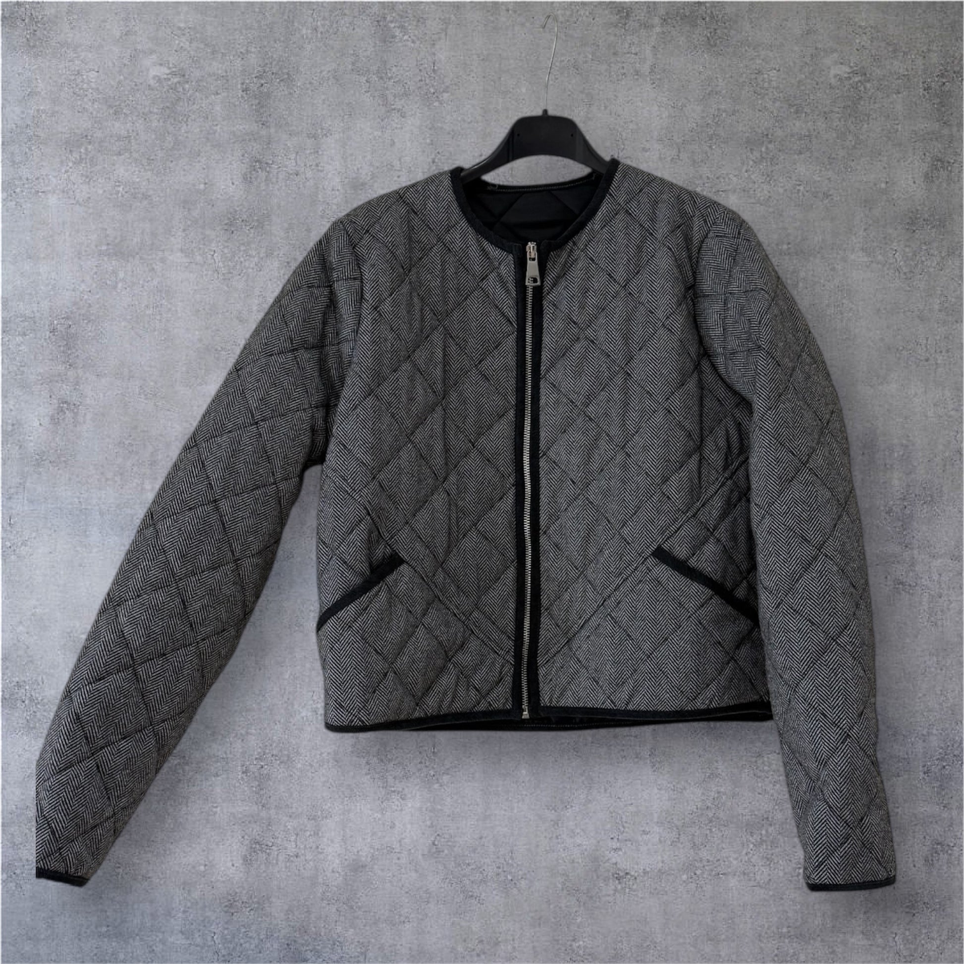Bomber con estampado de espiga . Acolchada . Talla única XS/M, ribeteada en otro tono , con bolsillos delanteros y cremallera central