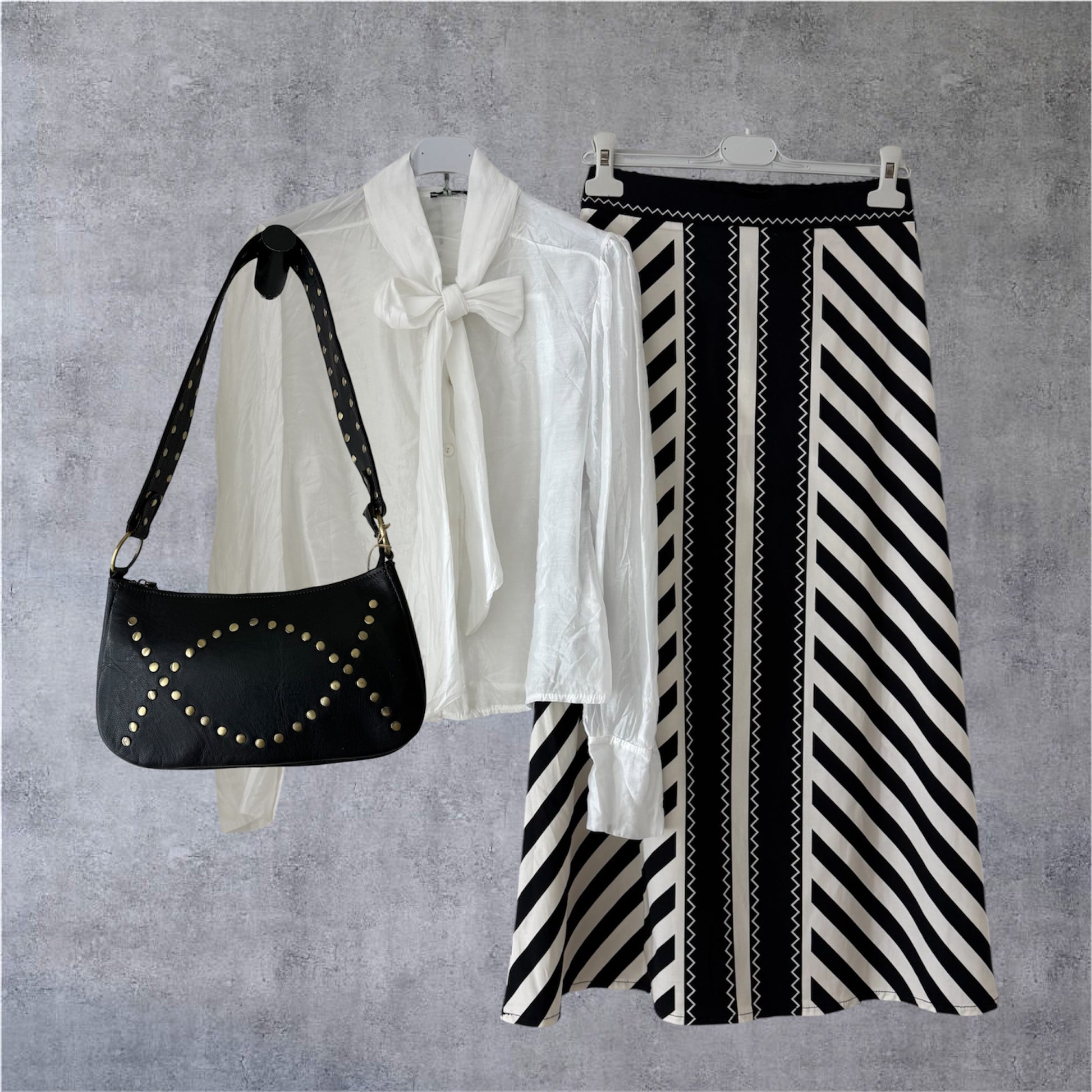 Falda de algodón estampada con cinturilla y goma trasera. Largo MIDI. Color Negro. Talla única S/L