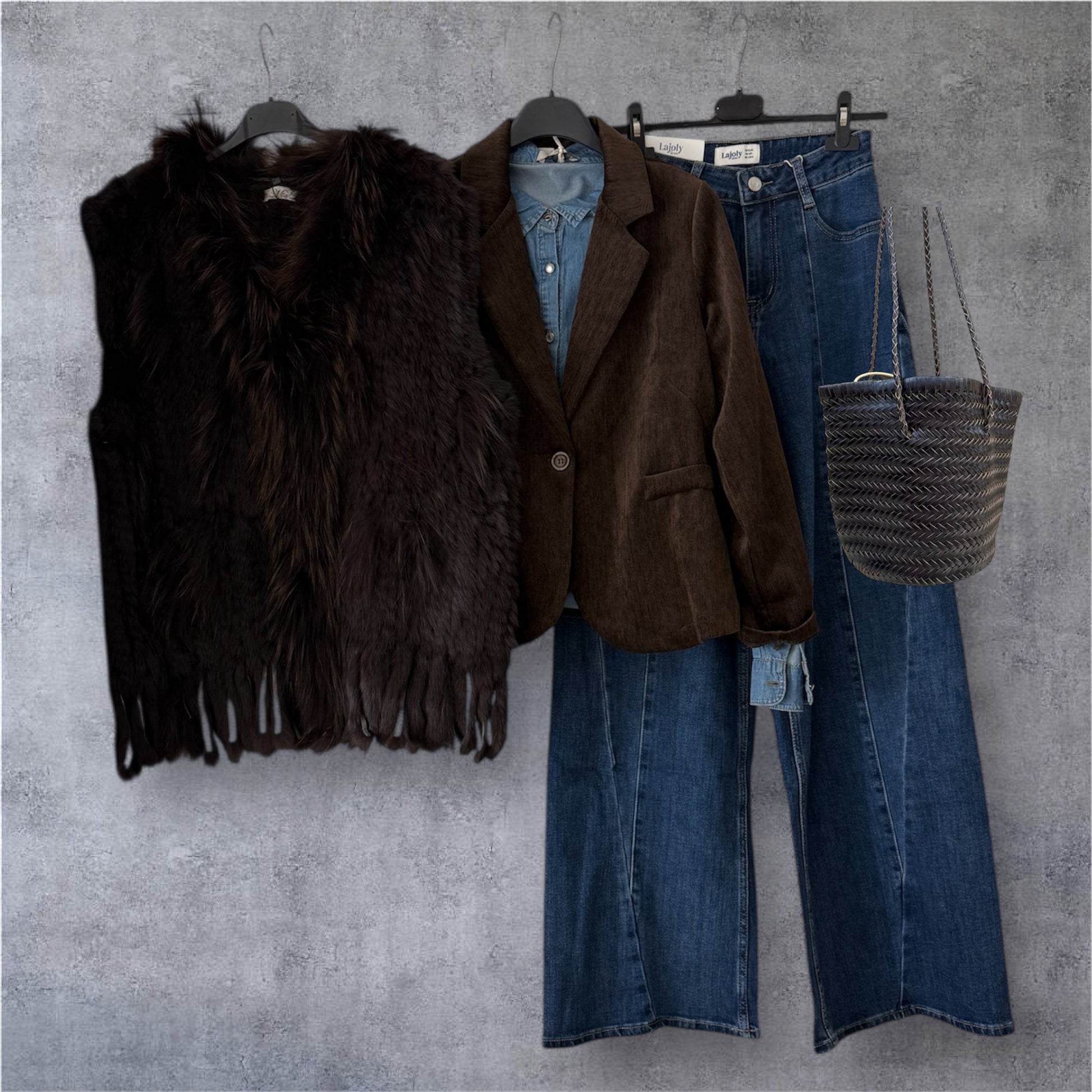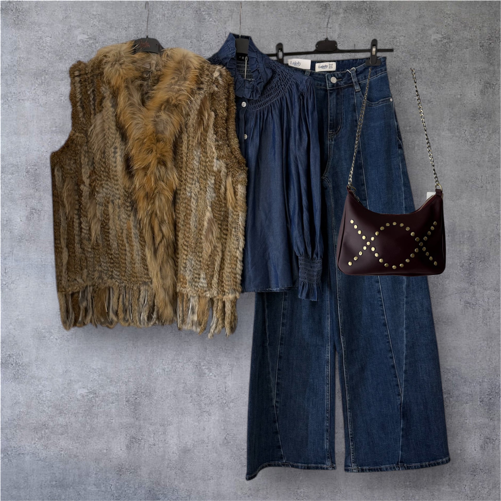 Chaleco de conejo natural con tiras en la parte inferior . Talla única S/L