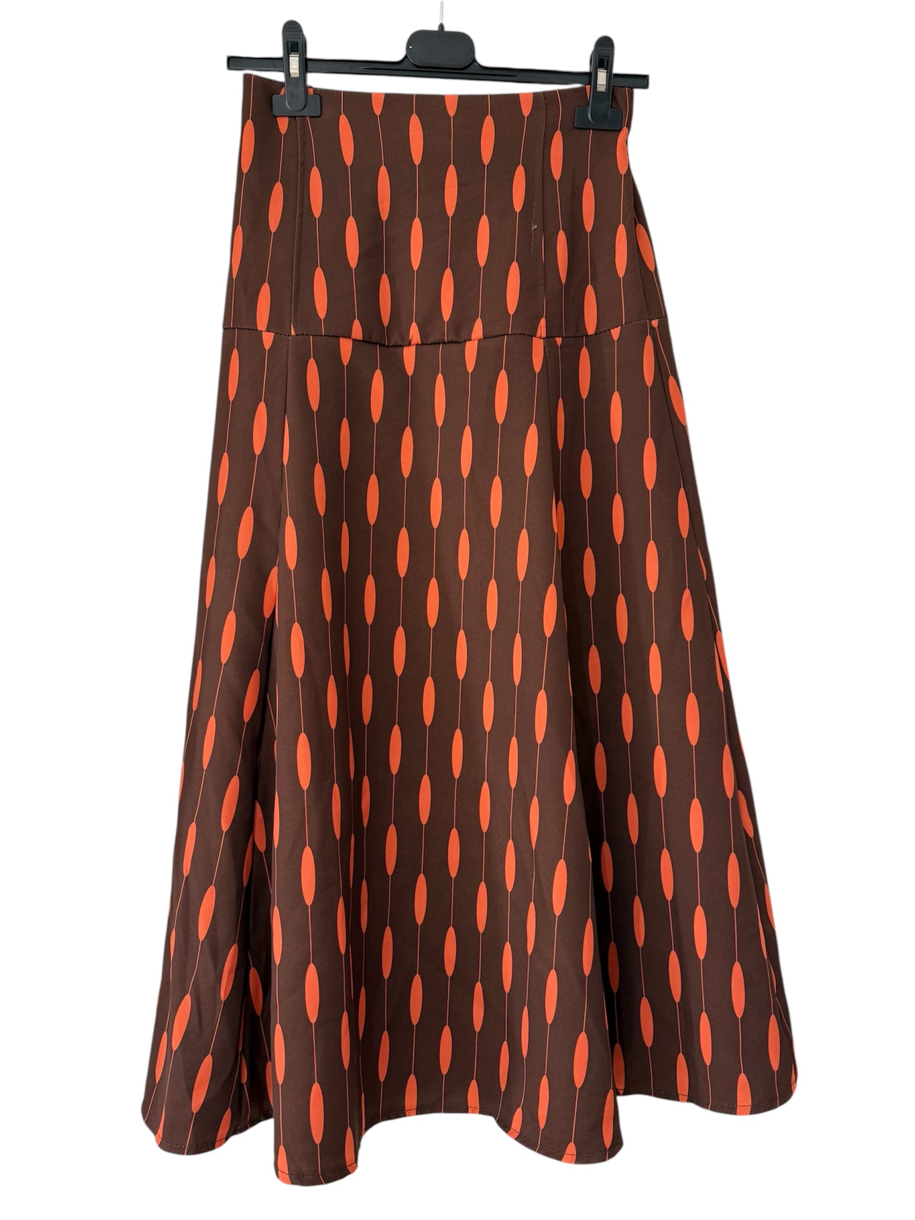 Saia evasé com elástico na cintura e nas costas. Tamanho único (S/L).