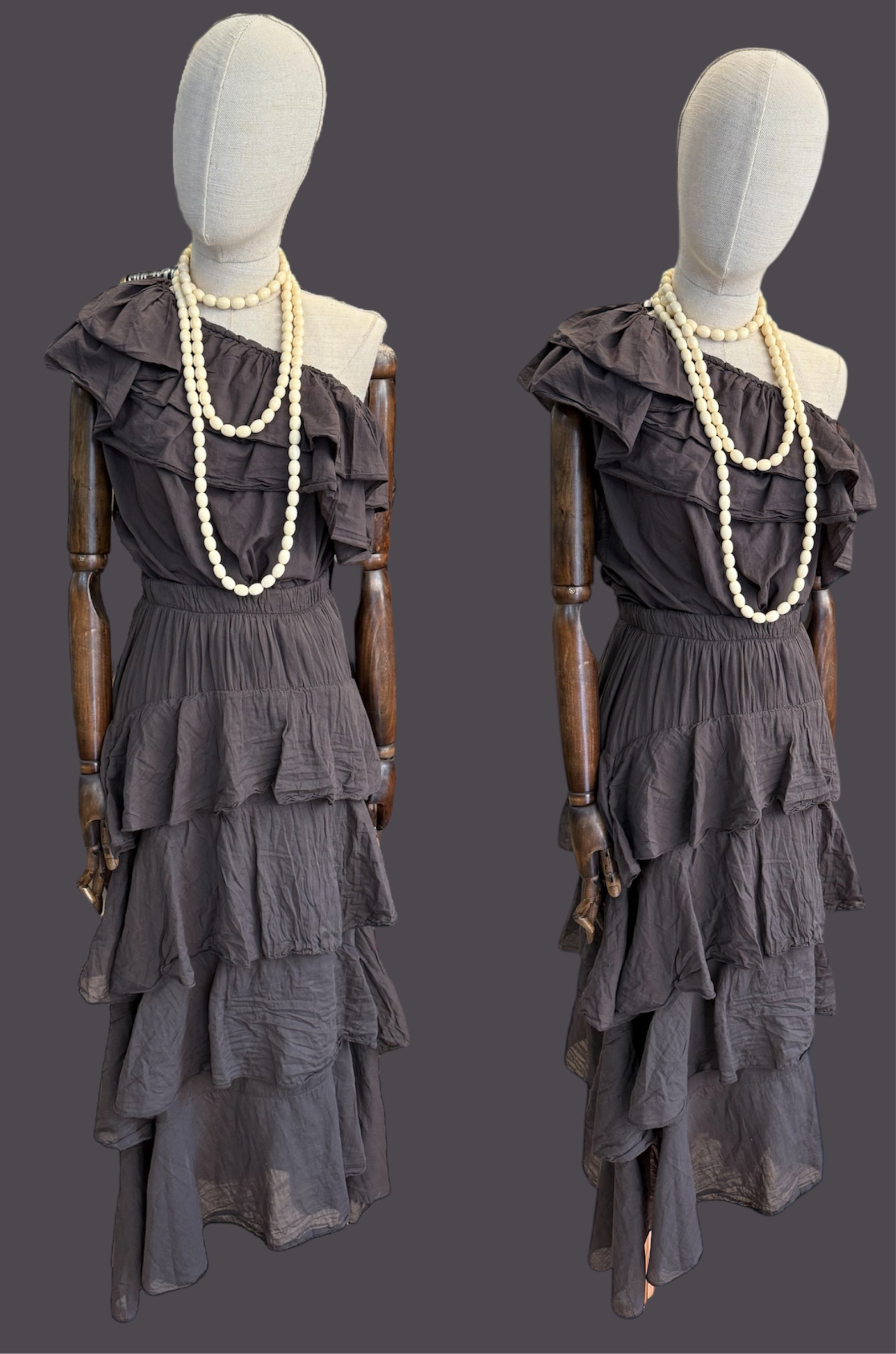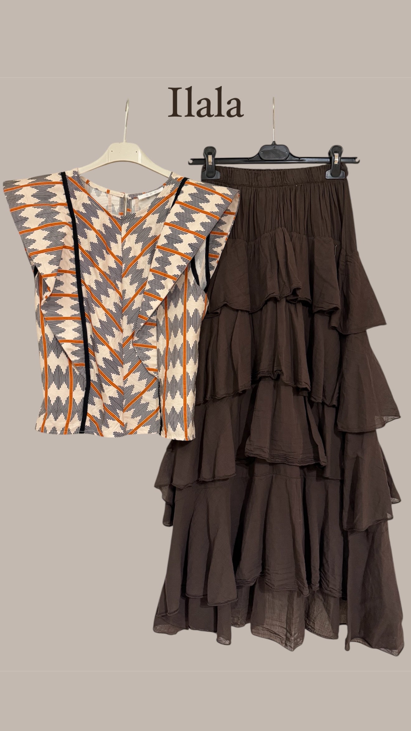 Saia com folhos, tecido fluido de algodão. Cintura elástica. Comprimento midi. Tamanho único S/L
